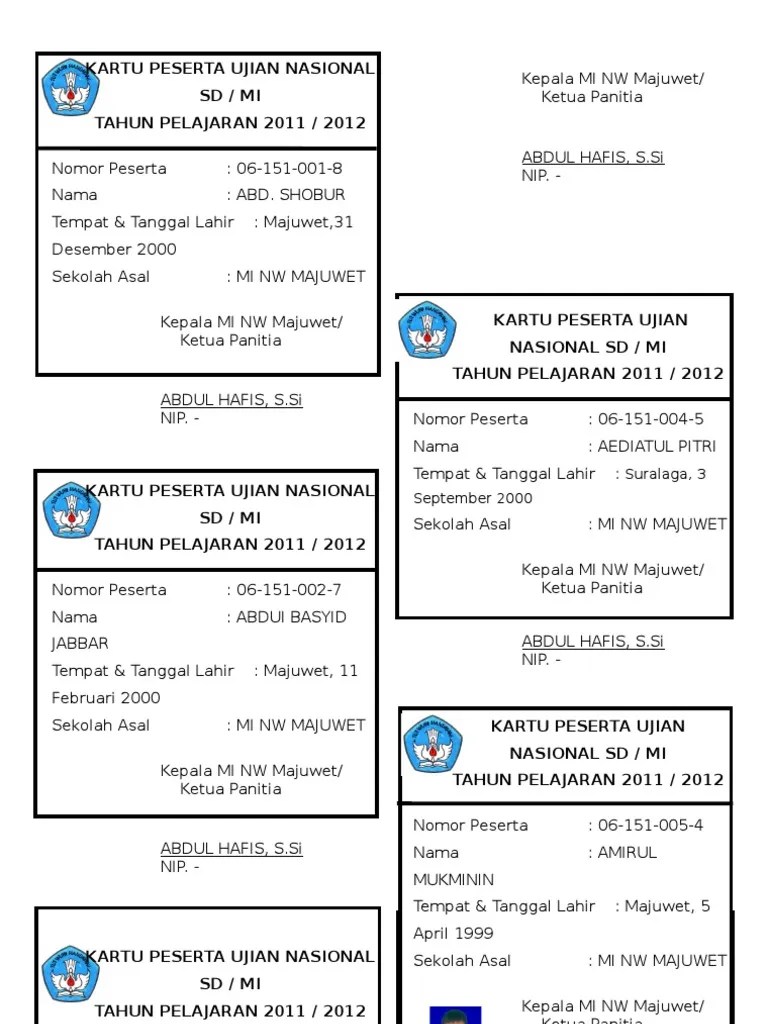 Try out usbk sd/mi 2018 try out usbk sd/mi 2018. Aplikasi kartu peserta ujian nasional terbaru tahun 2020 untuk sd,smp,sma. Cetak kartu ujian sekolah (us) legitimasi ujian sekolah dengan. Aplikasi penilaian ktsp semua kelas sekolah dasar dengan microsoft excel download gratis. Di data peserta un online. Membuat kartu peserta ujian sekolah 2021#andidj2020tutorialaplikasi membuat kartu peserta ujian otomatis,cara membuat aplikasi kartu peserta . Donwload aplikasi cetak kartu ujian disini: . Disamping itu aplikasi kartu ujian madrasah dan sekolah dasar untuk cetak id . Membuat kartu pelajar atau id card lainnya dengan microsoft access. Format kartu ujian in berfungsi sebagai tanda pengenal untuk peserta ujian sekolah ( un, usbn, us ) supaya dalam mengisi data peserta didik, peserta didik . Data siswa terdiri dari nim, nama, tempat tanggal lahir, nomor peserta. Kartu peserta ujian tentunya perlu dipersiapkan oleh pendidik dan menjadi. Tanda tangan kepala sekolah digital, tanda tangan yang di .